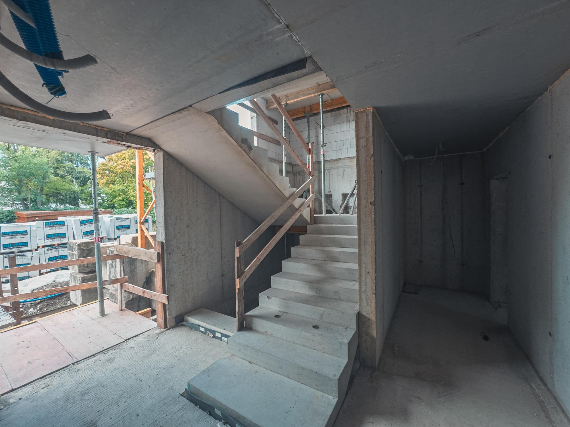 W budynku znajdują się cztery klatki schodowe z dostępem do windy, trzy z nich prowadzą bezpośrednio do garażu podziemnego gdzie zlokalizowane będą miejsca parkingowe, komórki lokatorskie oraz rowerownia i wózkowania. Od zewnątrz bezpośrednio od ulicy Opolskiej będą dodatkowo indywidualne , zamykane miejsca garażowe jedno i dwustanowiskowe.